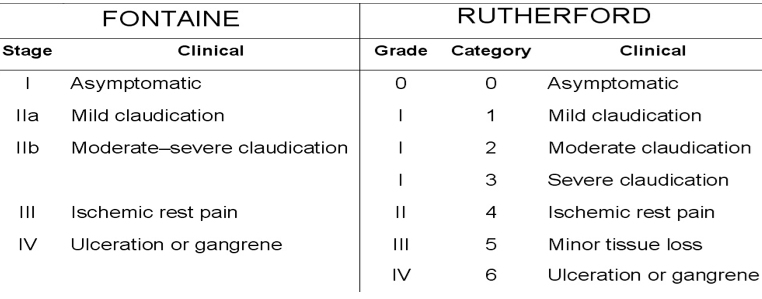 Postoji velik broj klasifikacija PAB, no najčešće se upotrebljavaju Fontainova i Rutherfordova klasifikacija.