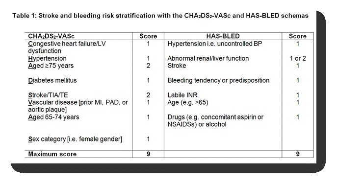 Prvi korak u pristupu bolesniku s FA je procjena rizika od tromboembolijskih događaja. ESC smjernice preporučuju upotrebu CHA2DS2-VASc skale za procjenu rizika od moždanog udara i sistemskih embolijskih događaja. Bolesnici s CHA2DS2-VASc skorom ≥2 trebaju biti antikoagulirani, osim ako postoji kontraindikacija.